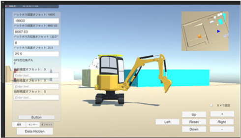 自動走行システムとUDP(User Datagram Protocol)通信で連携しつつ、最大で2台の不整地運搬車の動きをシミュレーション空間内に反映できることを確認している。