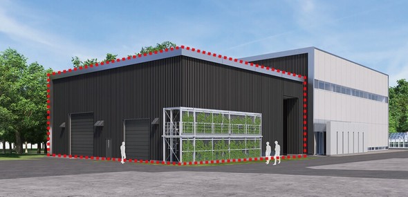 今回の工事では、解体建物の実験棟から取り出した部材を新築の鉄骨作業場に転用した。クレーンを設けるなど用途が大きく異なる建物でもリユース材による柔軟な設計/施工が可能だと実証したと報告している。