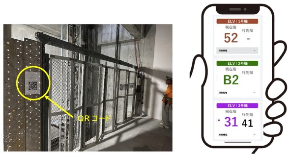 エレベーターの位置情報はQRコードを読み込むことで誰でも確認できるため、作業員の待ち時間の有効活用に寄与する。