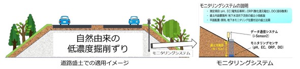 盛土内部の環境変化をモニタリングによってリアルタイムに確認できるため、掘削土の「無処理での重金属処理」の安全、安心が担保できるという。施工に伴うCO2排出量の低減やコスト削減にもつながる。