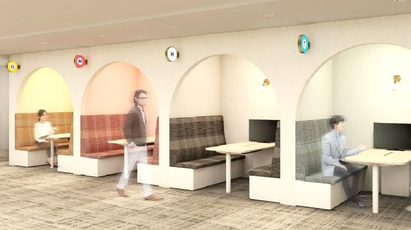 MSH日本橋箱崎ビルの所在地は東京都中央区日本橋箱崎町19−21で、移転フロアはビルの11〜13階。来客エリアでは、東京メトロらしさを発信し、来館者に楽しんでもらえるようなエリアとする。執務スペースはオープンな空間で自由な発想や挑戦するマインドを生み出し、新たな価値創造を図る。カフェエリアや集中スペースなども配置し、業務内容に応じて適した場所を選んで働くABWを可能にし、役職や部門を超えた交流にもつなげる。