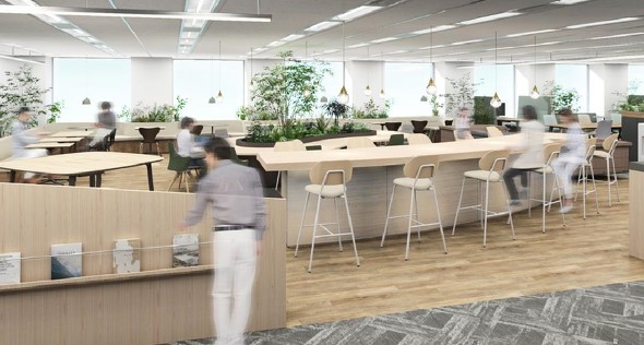 新オフィスでは「自由な発想で挑戦」し、「横断連携による価値創造」を促す環境と「社員エンゲージメントが高まる」空間を目指す。そのために「platform of Metro」をデザインコンセプトに据え、ユニバーサルデザインを取り入れ、緑が多く部署間コミュニケーションを促すオフィス環境と、業務内容やプロジェクトに応じて働く場所を選べるABW(Activity Based Working)を実現する。