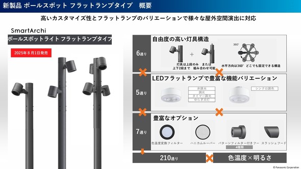 2025年8月22日の体験会で登壇したライフスタイルライティングビジネスユニット 商品企画部 エクステリア空間商品企画課 主務 佐々木健吉氏は「想定していた市場にリーチできているのを実感している。今後は再開発に携わる不動産デベロッパーやゼネコンなどの照明プランナーに積極提案し、街づくりでの採用を狙っていきたい」と意気込みを語った。街づくりで人々が集う滞留拠点が増えることを見据えた新設需要も見据え、さらなるラインアップ拡充も図る方針だ。