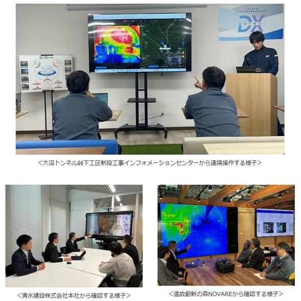 有事を想定した検証では、遠隔地からドローンを即時発進させ、緊急時でも作業員が立ち入ることなく切羽の安全状況を確認できることを確かめた。また、トンネル坑内を停電させ、暗所環境下でも坑内状況を把握できることを確認したという。