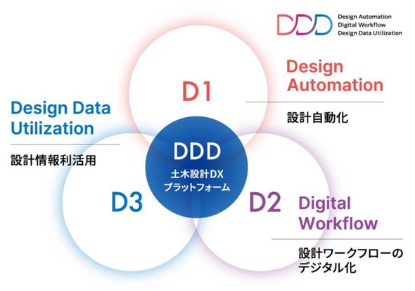 清水建設は2026年3月30日、土木設計のDX基盤として、設計の自動化(Design Automation)、設計ワークフローのデジタル化(Digital Workflow)、設計情報の利活用(Design Data Utilization)を図る土木設計プラットフォーム「Shimz DDD」を構築し、運用を開始したと発表した。