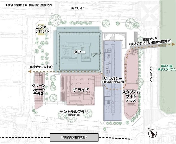 横浜市役所跡地に延べ床面積は約12.9万平方メートルの街区を整備